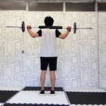 次にバーベルなど、負荷になるものを背負い、真上に引っ張られるようにめいっぱい上げます。